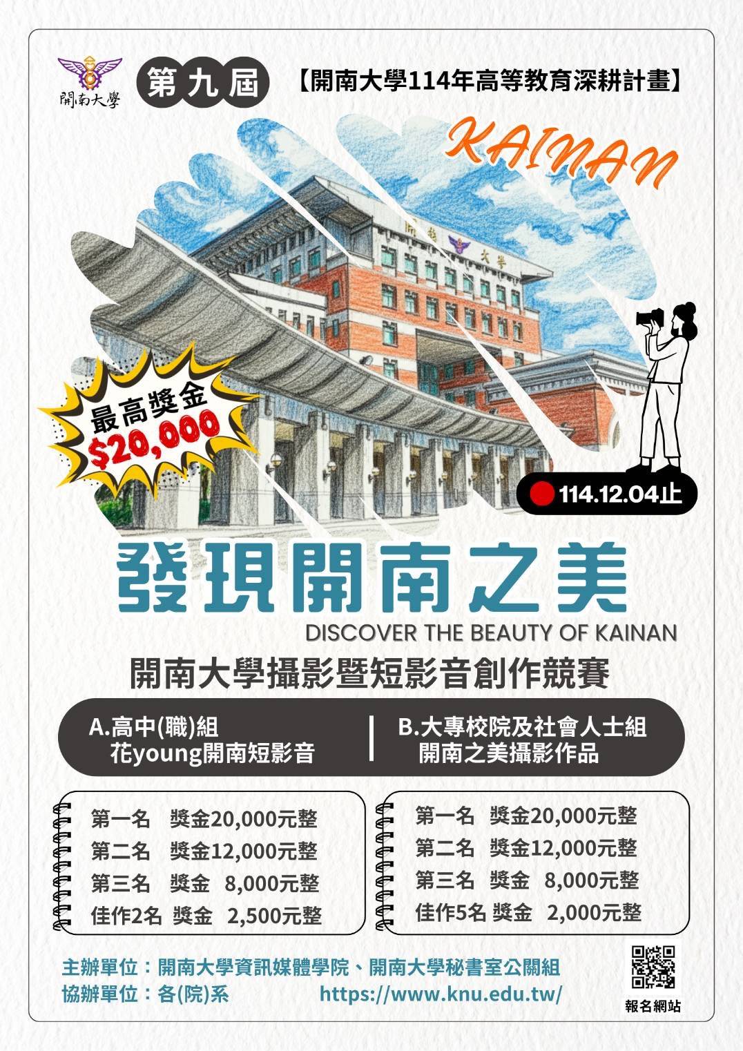 🎉 歡迎您協助分享與推薦,也熱烈邀請您的學生一起用鏡頭看見世界、看見開南。